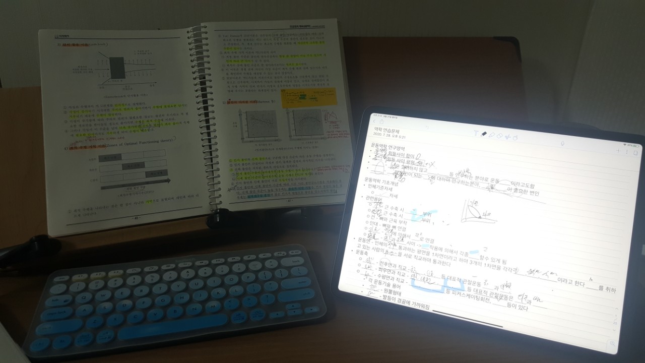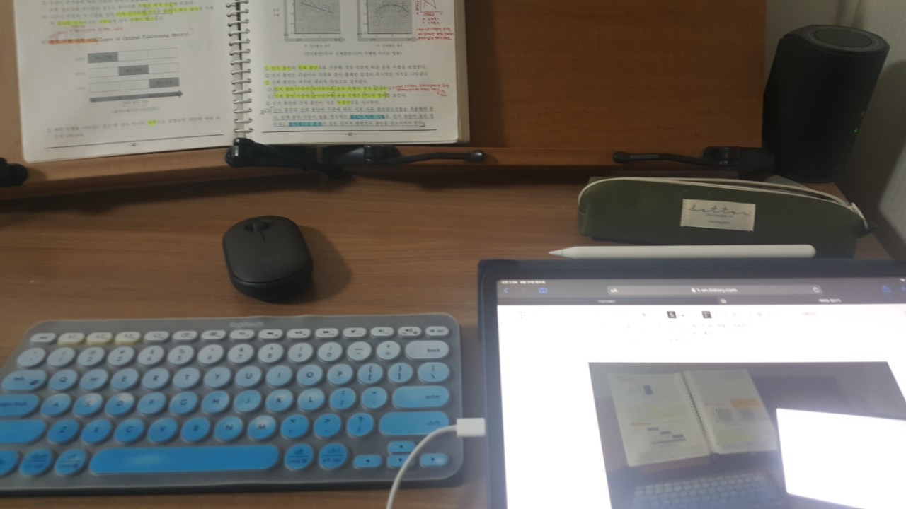 제가 사용하는 아이패드는 12.9인치입니다. 그나마 젤 크다고 하지만 '아이패드로만' 공부하는 것은 저는 무리가 있다고 생각했습니다. 화면 분할을 하면 A4 절반 크기가 되어버리는데 확대하고 다시 줄이고 거기다 필기하고 옆에다 나름대로 주석을 달고 덧붙이고.. 쉽지 않다고 생각했습니다.